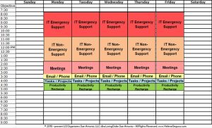 The next two examples are for those in IT or anyone who works in a trouble-shooting/customer service position and is on call to come to the rescue, but realizes that they’d have fewer emergencies if they could have some proactive maintenance opportunities.