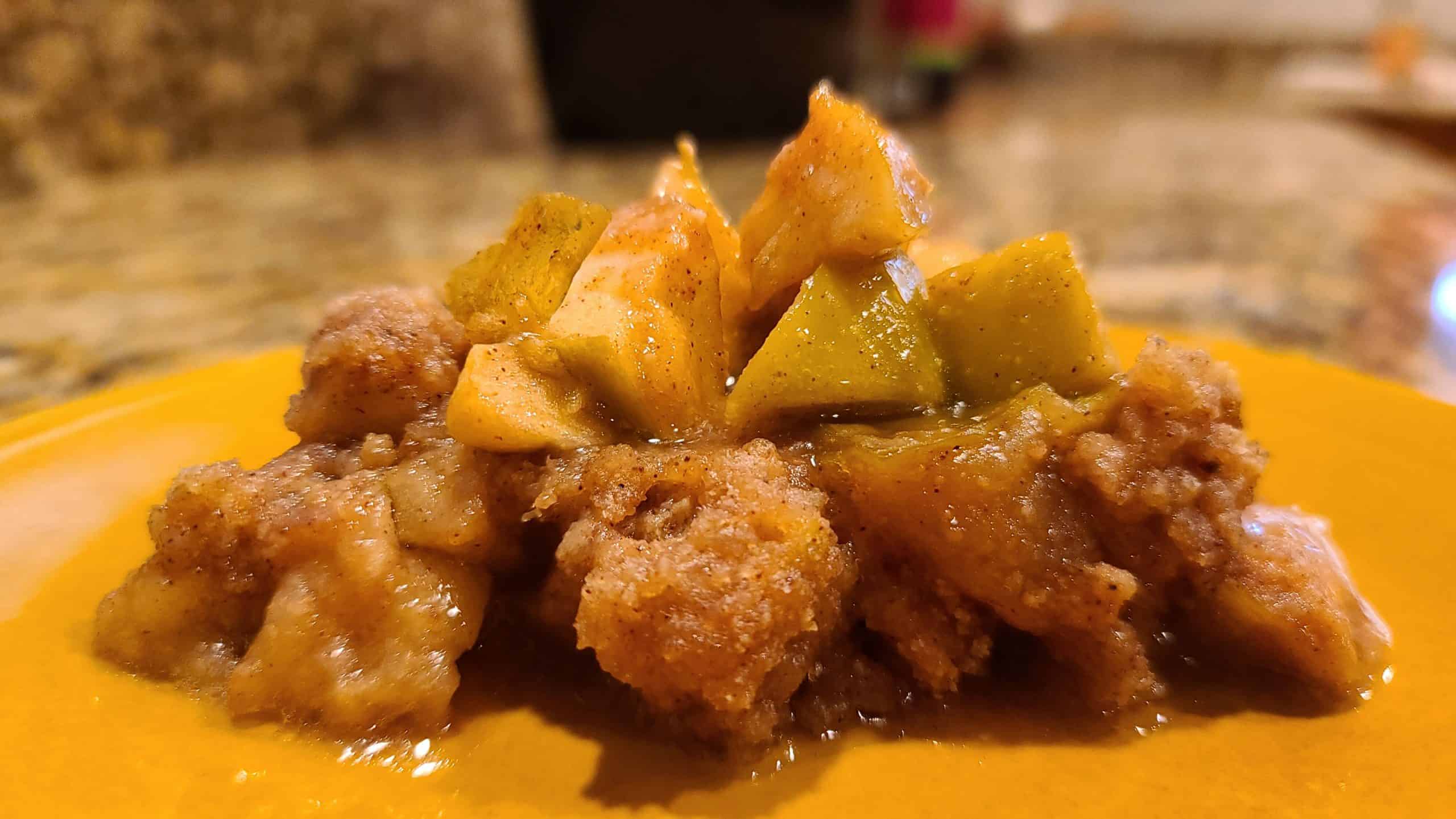 Ingredients Crumble Topping 1 cup all-purpose flour (for Keto: almond flour) 1 cup brown sugar (for Keto: golden granular monk fruit or other brown sugar substitute) ½ teaspoon ground cinnamon ¼ teaspoon nutmeg 1 pinch salt 1/2 cup butter, cut into ¼” -ish cubes 1 cup chopped walnuts (optional) Apple Coating ½ cup brown sugar…
